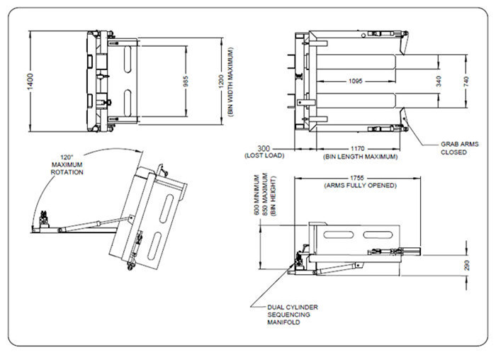 WB-660 Forklift Tekerlekli Çöp Kovası Damperli tip, standart 660 litrelik plastik bidonları boşaltmak için tasarlanmıştır. Hazne, haznenin işyerinde kaldırılmasına/taşınmasına ve boşaltılmasına olanak tanıyan iki yan Kelepçe ile kızağa sabitlenmiştir. Devirme işlemi basit ve güvenlidir; operatör, devirme hareketini etkinleştirmek için bir çekme akoru kullanarak koltuğundan asla kalkmak zorunda kalmaz.